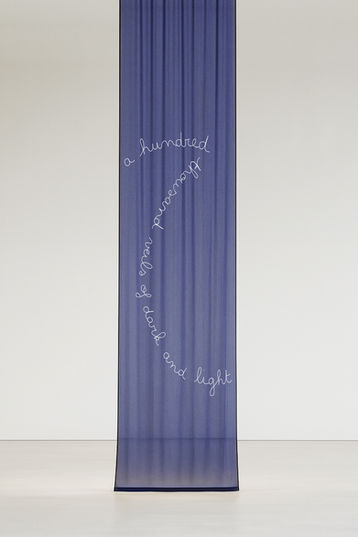 Placed together, the veils reveal a single rewritten passage. Installed apart, they propose a different mode of narrative — one that unfolds through distance, dispersion, and delay. Archipelogos does not ask what the poem says, but how meaning behaves when fractured: how a story persists not through coherence, but through the act of searching.