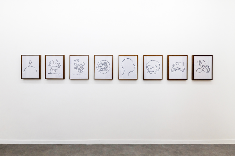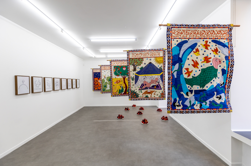 The Chimera series brings this condition into focus through composite bodies that hold multiplicity without resolving it, where dual or bifurcated forms coexist within a single figure and sustain contradiction as a mode of existence. In The Jinny from the West, forms become more unstable and proliferative, extending beyond their own contours and introducing a figure of alterity that cannot be assimilated, remaining in excess of any stable reading. The Ḥayāt al-Ḥayāt series, through the recurring figure of the serpent, unfolds a logic of continuous transformation, where the body moves through undulation, shedding, and renewal, displacing fertility from reproduction toward a more open field of potentiality.